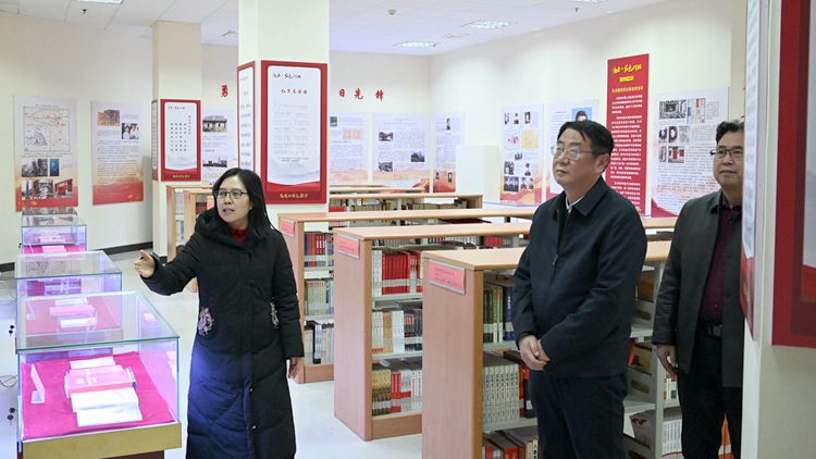在圖書(shū)館調(diào)研期間,王浩深入了解了我校商洛紅色文化資料館建設(shè)、紅色文化研究中心研究成果、紅色文化研究團(tuán)隊(duì)宣講等方面情況。在圖書(shū)館館長(zhǎng)張國(guó)春的陪同下,參觀了館藏《四庫(kù)全書(shū)》等珍貴文獻(xiàn)及商洛地方文獻(xiàn)。王浩指出,大學(xué)圖書(shū)館是人類(lèi)知識(shí)和智慧匯聚之地,要圍繞服務(wù)保障師生教學(xué)科研文化建設(shè)需求,加快資源建設(shè)、提高信息化水平、提升服務(wù)質(zhì)量,為一流學(xué)院建設(shè)貢獻(xiàn)圖書(shū)館力量。王浩強(qiáng)調(diào),商洛是革命老區(qū),蘊(yùn)藏著豐富的歷史文化、紅色文化資源,要充分挖掘、利用這些寶貴財(cái)富,不斷豐富館藏內(nèi)涵,充分發(fā)揮紅色文化育人作用,講好紅色故事、弘揚(yáng)革命精神。