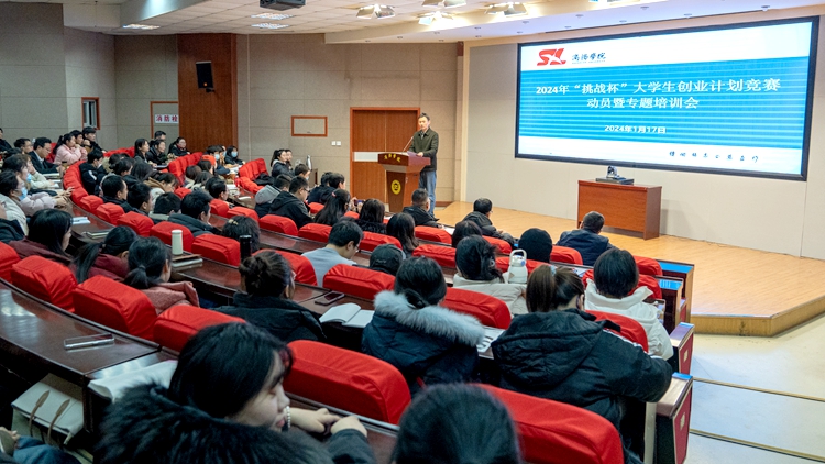 為進(jìn)一步激發(fā)學(xué)生創(chuàng)業(yè)活力和創(chuàng)業(yè)潛能,扎實(shí)做好“挑戰(zhàn)杯”創(chuàng)業(yè)計(jì)劃競賽相關(guān)工作,1月17日下午,我校舉辦2024年“挑戰(zhàn)杯”創(chuàng)業(yè)計(jì)劃競賽動員暨專題培訓(xùn)會。校黨委副書記劉勇出席會議并作動員講話。學(xué)生處、團(tuán)委負(fù)責(zé)人,各二級學(xué)院分管創(chuàng)新創(chuàng)業(yè)教育工作副書記(副院長)、團(tuán)總支書記、指導(dǎo)教師及學(xué)生代表參加動員暨培訓(xùn)會。