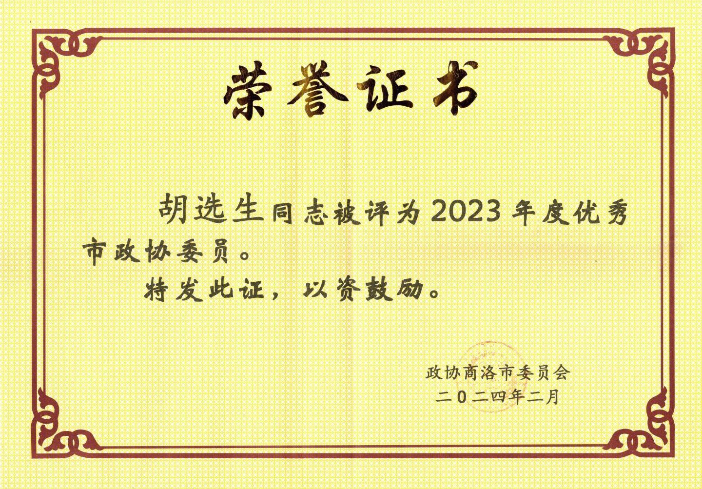 2月3日下午,中國(guó)人民政治協(xié)商會(huì)議商洛市第五屆委員會(huì)第三次會(huì)議在商州閉幕。會(huì)議通報(bào)表彰了2023年度優(yōu)秀市政協(xié)委員,我校生物學(xué)院胡選生博士被評(píng)為“2023年度優(yōu)秀市政協(xié)委員”。