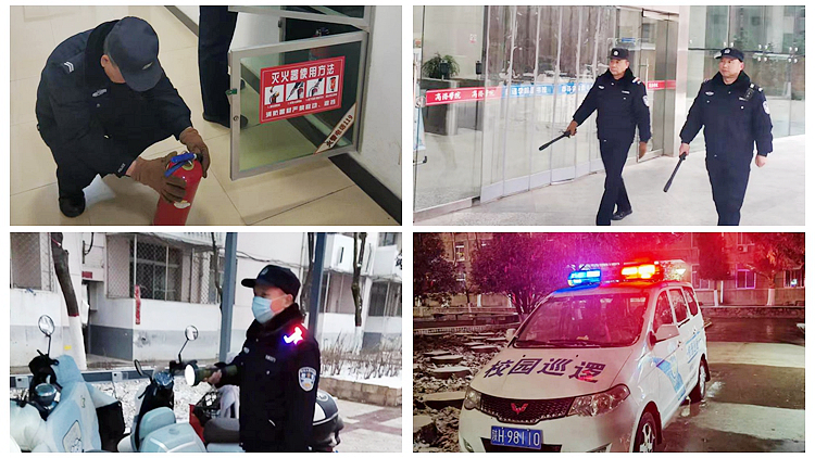 保衛(wèi)處:寒假期間,當(dāng)廣大師生和家人歡聚休息時(shí),新春佳節(jié),當(dāng)千家萬戶共享團(tuán)圓時(shí),為確保校園安全,全體保衛(wèi)干部職工和校衛(wèi)隊(duì)員毅然舍小家,顧大家,堅(jiān)守在各自工作崗位上,不懼風(fēng)雪,不畏嚴(yán)寒,以“時(shí)時(shí)放心不下”的情懷全力做好安全保衛(wèi)工作,確保校園安全穩(wěn)定,實(shí)現(xiàn)了“零發(fā)案”的目標(biāo),有效保障了全校師生度過了一個(gè)平安祥和的春節(jié)和假期。放假前,保衛(wèi)處專門下發(fā)通知,對(duì)學(xué)校寒假和春節(jié)期間安全保衛(wèi)工作進(jìn)行周密安排,要求校內(nèi)各單位認(rèn)真開展安全教育和安全檢查,切實(shí)落實(shí)各級(jí)安全責(zé)任,排除各種安全隱患,加強(qiáng)留校師生的安全管理,嚴(yán)格執(zhí)行帶班值班備勤制度,加強(qiáng)值班和信息報(bào)送,保證假期各項(xiàng)安保工作不間斷。假期當(dāng)中,保衛(wèi)處堅(jiān)持“預(yù)防為主,安全第一”原則,扎實(shí)開展校園及周邊安全檢查巡查,組織專人對(duì)各個(gè)重點(diǎn)區(qū)域開展安全隱患排查和執(zhí)勤守護(hù),按照“誰主管,誰負(fù)責(zé)”的原則督促相關(guān)單位及時(shí)整改存在問題,落實(shí)安全防范措施,嚴(yán)防各自工作區(qū)域、業(yè)務(wù)領(lǐng)域發(fā)生安全事故。保衛(wèi)處各警區(qū)和“校園110”堅(jiān)持24小時(shí)值班,隨時(shí)處置各類突發(fā)事件,監(jiān)控室對(duì)校園重點(diǎn)區(qū)域?qū)崟r(shí)進(jìn)行監(jiān)控,校衛(wèi)隊(duì)加強(qiáng)校門管控,各警區(qū)加大對(duì)校園的巡邏力度,寒假和春節(jié)期間校園安全穩(wěn)定和諧有序。