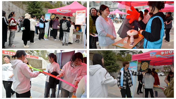 啟動(dòng)儀式結(jié)束后,學(xué)生們自發(fā)參加了一心一意區(qū)、趣味益智區(qū)、思維挑戰(zhàn)區(qū)、隨心創(chuàng)作區(qū)、爭(zhēng)分奪秒?yún)^(qū)、游園之星挑戰(zhàn)區(qū)、快樂(lè)套圈區(qū)等專(zhuān)題活動(dòng)項(xiàng)目。參與活動(dòng)的學(xué)生紛紛表示,通過(guò)參加心理游園會(huì),在輕松愉悅的氛圍中釋放了壓力,收獲了快樂(lè)與溫暖。