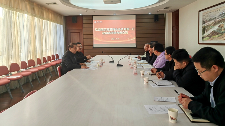 王新軍代表我校對劉波一行的到來表示歡迎,并對南京市商洛商會對我校的關(guān)心和支持表示感謝。他指出,南京市商洛商會是加強商洛籍南京商界人士同家鄉(xiāng)聯(lián)系溝通的紐帶和橋梁,為政府與企業(yè)、企業(yè)與企業(yè)之間聯(lián)絡(luò)搭建了平臺,極大地促進了寧商協(xié)作交流。他希望,商會能夠充分利用其資源優(yōu)勢,為我校牽線搭橋,拓展我校與南京企事業(yè)單位的合作領(lǐng)域,在產(chǎn)教融合、實習(xí)就業(yè)、科研平臺建設(shè)等方面爭取更多合作機會,為我校應(yīng)用型人才培養(yǎng)提供更多支持,依靠寧商協(xié)作機制共同推動商洛區(qū)域科技創(chuàng)新。