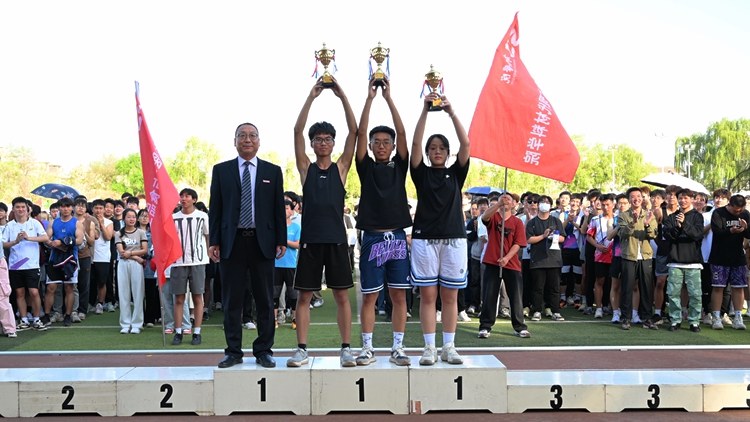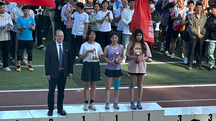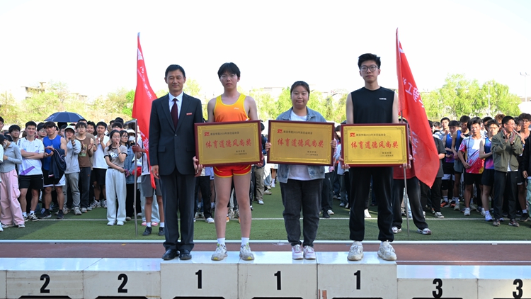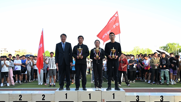 在熱烈的掌聲中,劉勇、王浩分別為獲得體育道德風(fēng)尚獎(jiǎng)和教工組團(tuán)體總分前三名的學(xué)院頒獎(jiǎng),劉寶盈、王新軍、郭瑾分別為獲得團(tuán)體總分、男子團(tuán)體總分、女子團(tuán)體總分前三名的學(xué)院頒獎(jiǎng)。