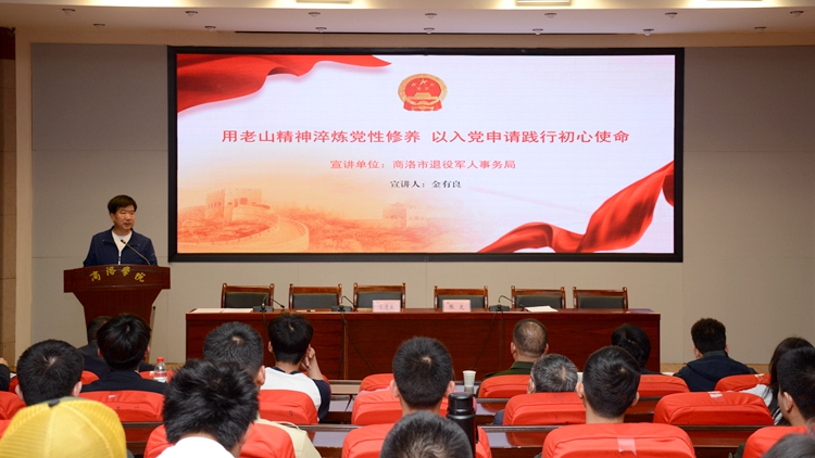 為進(jìn)一步加強(qiáng)學(xué)生愛國主義教育,4月17日,我校邀請(qǐng)商洛市退役軍人事務(wù)局三級(jí)調(diào)研員金有良為我校師生作報(bào)告。各二級(jí)學(xué)院黨委、黨總支相關(guān)負(fù)責(zé)人、征兵工作聯(lián)絡(luò)員,我校優(yōu)質(zhì)兵員儲(chǔ)備基地訓(xùn)管骨干、預(yù)征班學(xué)員及學(xué)生代表共計(jì)160余人參加報(bào)告會(huì)。