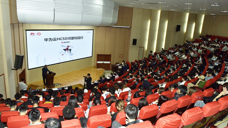 為深化我校師生對大數(shù)據(jù)及人工智能領(lǐng)域前沿技術(shù)、發(fā)展趨勢認(rèn)識,助力學(xué)校數(shù)字產(chǎn)業(yè)人才培養(yǎng),4月23日,在商洛市委網(wǎng)信辦指導(dǎo)下,華為云公司在我校開展“華為云HCSD鴻蒙校園行”活動,與數(shù)計學(xué)院、電信學(xué)院、經(jīng)管學(xué)院300余名師生分享華為云及鴻蒙系統(tǒng)應(yīng)用生態(tài)。副校長劉寶盈、華為陜西公司副總經(jīng)理孫偉出席活動并致辭。商洛市委網(wǎng)信辦副主任康明亮,我校學(xué)生處、教務(wù)處、科技處、信息化建設(shè)與管理處相關(guān)負(fù)責(zé)人參加活動?;顒佑牲h委委員、宣傳部部長王霄飛主持。