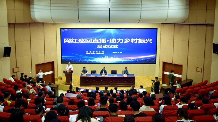 為宣傳商洛市優(yōu)秀企業(yè)和名優(yōu)特農(nóng)產(chǎn)品,推動農(nóng)產(chǎn)品線上銷售,助力鄉(xiāng)村振興,5月11日,由商洛市商務局、商洛市直播產(chǎn)業(yè)研究院聯(lián)合舉辦的商洛市“網(wǎng)紅巡回直播·助力鄉(xiāng)村振興”直播促銷活動啟動儀式在我校舉辦。副校長王新軍、市商務局局長韓東文出席活動并講話。各縣區(qū)電商服務中心負責人、“巡回直播”網(wǎng)紅團隊和商洛直播產(chǎn)業(yè)研究院社會實踐團隊師生200余人參加啟動儀式。