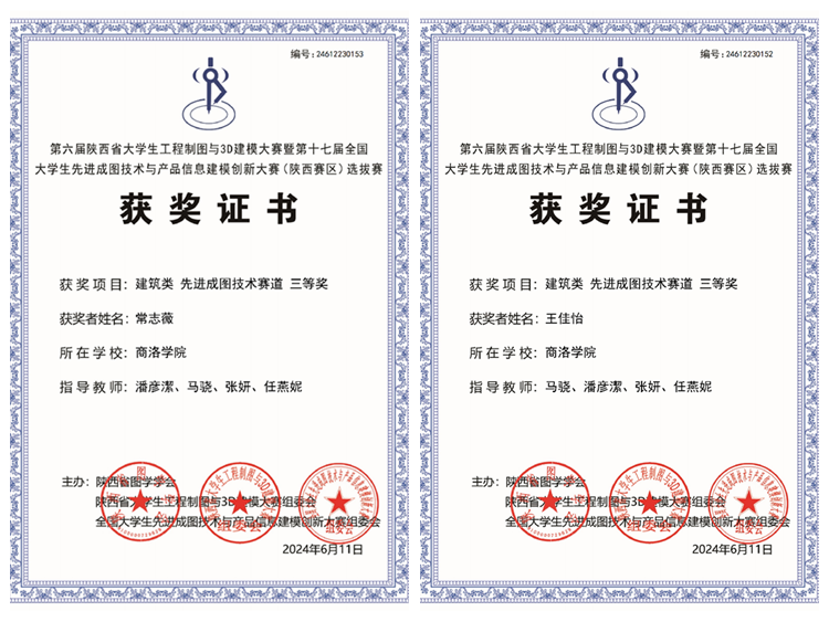 近日,第十七屆全國大學(xué)生先進成圖技術(shù)與產(chǎn)品信息建模創(chuàng)新大賽(陜西賽區(qū))選拔賽結(jié)果揭曉,我校城鄉(xiāng)規(guī)劃與建筑工程學(xué)院城鄉(xiāng)規(guī)劃專業(yè)學(xué)生常志薇、王佳怡在建筑類(先進成圖技術(shù)賽道)中分獲三等獎。
