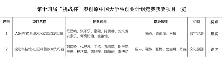 本屆競賽由共青團中央、教育部、人力資源和社會保障部、中國科協(xié)、全國學(xué)聯(lián)、陜西省人民政府聯(lián)合主辦,西安交通大學(xué)、共青團陜西省委承辦,設(shè)置主體賽及“一帶一路”國際邀請賽、“秦創(chuàng)原”創(chuàng)新挑戰(zhàn)賽2項配套交流活動。此次競賽共吸引來自2700余所高校的300多萬名學(xué)生參與,累計提交39萬余個創(chuàng)新創(chuàng)業(yè)項目。經(jīng)過各學(xué)校初賽、各省復(fù)賽,共有412所國內(nèi)高校、14所國際高校的839個項目進(jìn)入全國決賽終評,最終在“秦創(chuàng)原”創(chuàng)新挑戰(zhàn)賽中,我校推薦的項目《AI分布式全域污水動態(tài)監(jiān)測系統(tǒng)》獲銀獎、《流動科技館-山區(qū)科普教育先行者》獲銅獎。