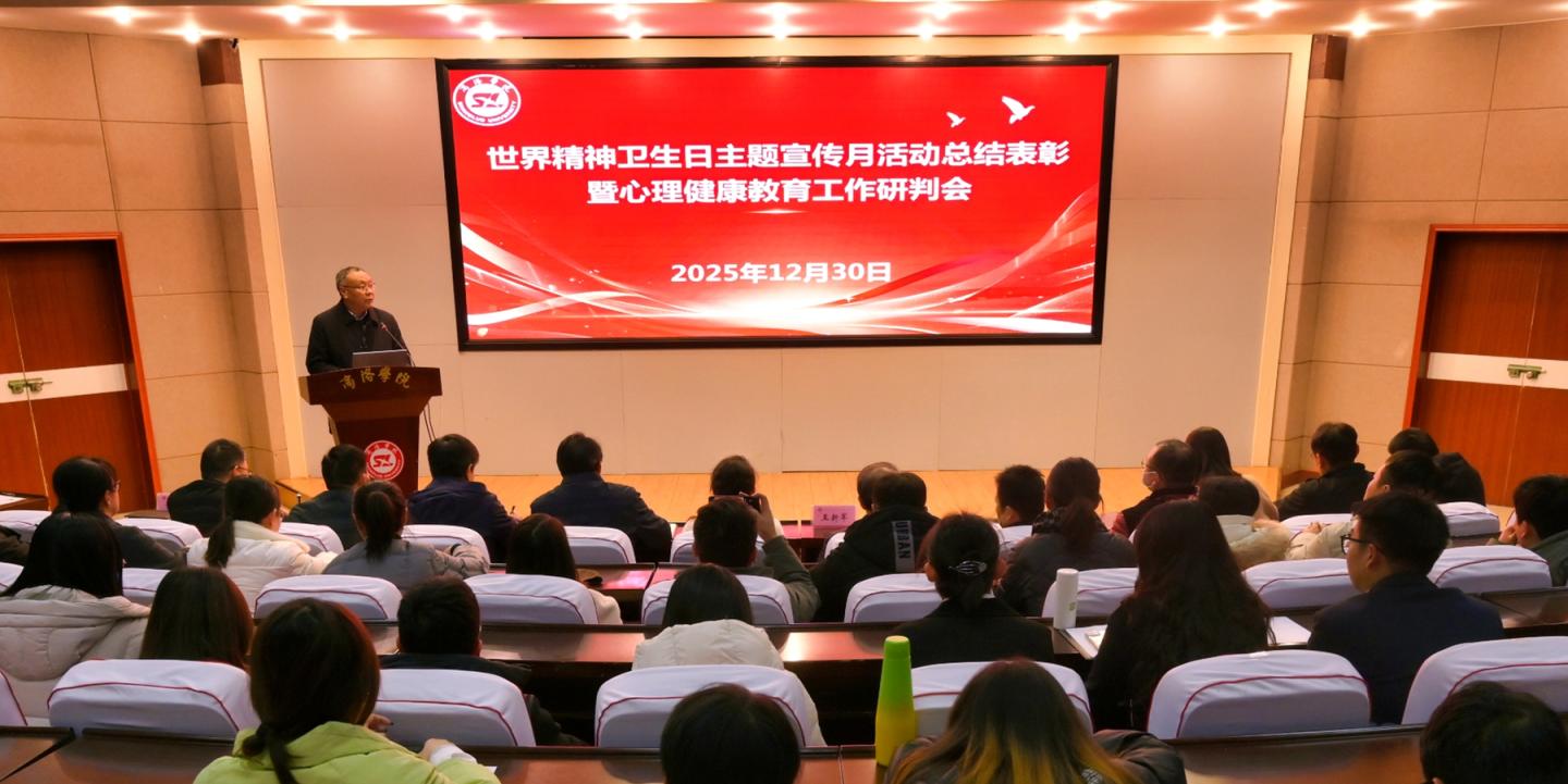 12月30日,我校召開2025年世界精神衛(wèi)生日主題宣傳月活動(dòng)總結(jié)表彰暨心理健康教育工作研判會(huì)。校黨委副書記王新軍出席會(huì)議,商洛市精神衛(wèi)生防治技術(shù)辦公室主任趙莉受邀參會(huì)。各二級學(xué)院黨委書記、副書記、學(xué)工辦主任、輔導(dǎo)員代表,心理健康教育中心專兼職教師及班級心理委員代表等120余人參加會(huì)議。會(huì)議由學(xué)生處處長李彥廣主持。
