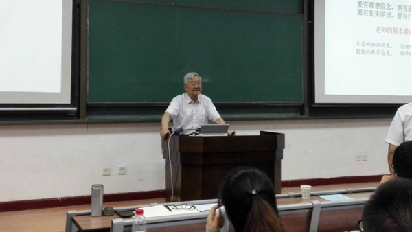 培訓(xùn)會上,首屆國家級教學(xué)名師、西安交通大學(xué)教師教學(xué)發(fā)展中心主任馬知恩教授做了《怎樣上好一堂課》的精彩演講。馬知恩教授從習(xí)近平總書記對高校教師提出的“四有”要求出發(fā),從五個方面分享了自己從教50多年的寶貴經(jīng)驗和心得體會:一、高度的敬業(yè)精神;二、認真?zhèn)湔n,精心進行教學(xué)設(shè)計;三、要有激情,對學(xué)生有吸引力和感染力;四、練好基本功,養(yǎng)成良好的習(xí)慣;五、更新教育理念,培養(yǎng)創(chuàng)新型人才。他認為,上好一堂課有兩個大前提:一是對教學(xué)要有高度的敬業(yè)精神,要把教學(xué)作為自己的事業(yè)去追求;把教學(xué)當(dāng)作一門藝術(shù),不斷探索,追求完美;把每一次講課看成是一場演出,高標準要求自己,精益求精。二是要有堅實的業(yè)務(wù)基礎(chǔ)和一定的科研能力。上好一節(jié)課對教師意味著要認真?zhèn)湔n,精心設(shè)計;意味著要有激情,對學(xué)生有吸引力和感染力;意味著教師要練好基本功,養(yǎng)成良好的習(xí)慣;要更新教育理念,提升教學(xué)水平,培養(yǎng)創(chuàng)新型人才。