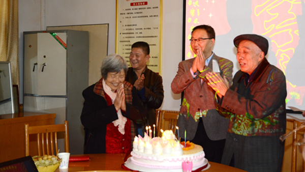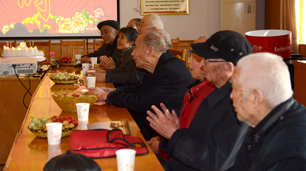 校領(lǐng)導(dǎo)在祝壽會(huì)上和老壽星們親切交談,了解他們現(xiàn)在的生活情況和身體狀況,和他們一起點(diǎn)蠟燭、切蛋糕,祝福他們健康長(zhǎng)壽、幸福美滿。