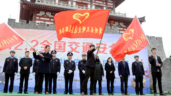 為倡導(dǎo)廣大市民文明、有序、安全出行,營造和諧文明的交通環(huán)境。12月2日,商洛市公安局交通警察支隊(duì)組織開展了以“遵法守規(guī)明禮 安全文明出行”為主題的2017年全國交通安全日宣傳活動(dòng)。我校團(tuán)委積極組織近百名志愿者參加本次活動(dòng)。商洛市公安局交警支隊(duì)支隊(duì)長樊永生為我校文明交通志愿服務(wù)隊(duì)授旗。