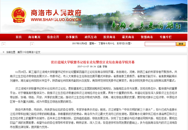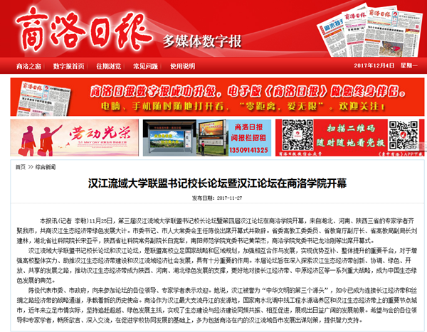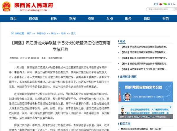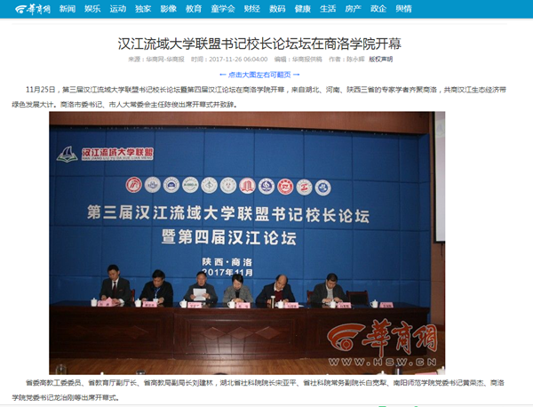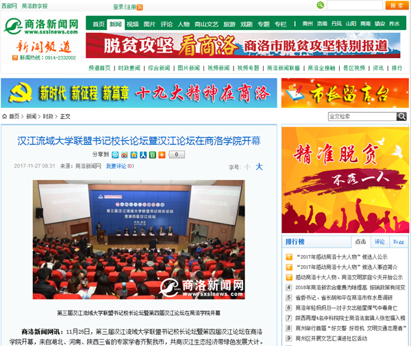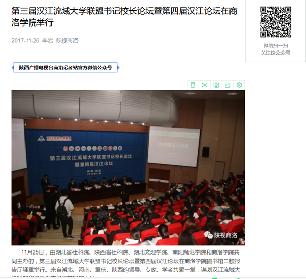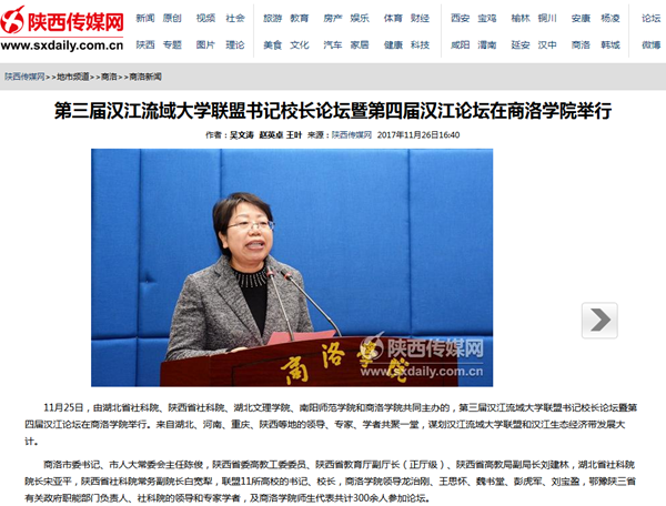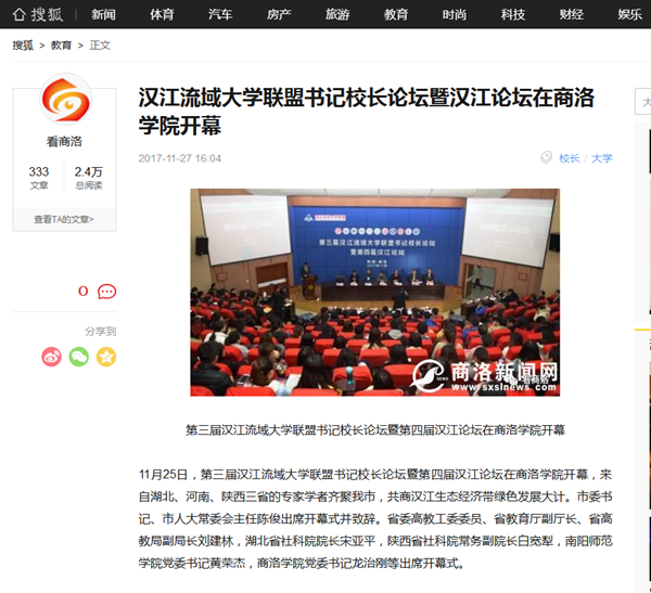 近日,網(wǎng)易、搜狐、中國社會科學網(wǎng)、陜西省人民政府網(wǎng)、陜西傳媒網(wǎng)、陜西電視臺、華商網(wǎng)、商洛市人民政府網(wǎng)、商洛日報、商洛新聞網(wǎng)、聯(lián)盟各單位網(wǎng)站等國家及地方主流資訊平臺,紛紛聚焦報道第三屆漢江流域大學聯(lián)盟書記校長論壇暨第四屆漢江論壇在我校的舉辦盛況,引起了社會各界對漢江生態(tài)經(jīng)濟帶及漢江流域大學聯(lián)盟高校的更多關注,獲得了眾多網(wǎng)友為商洛學院紛紛點贊。