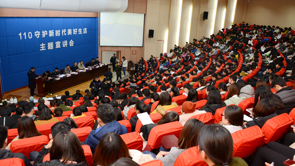 范新會代表學(xué)校對市公安局110平安校園宣講活動走進(jìn)我校表示熱烈歡迎,對商洛各級公安機關(guān)長期以來對我校各項工作的支持表示感謝,并向與會人員介紹了我校的發(fā)展歷程和平安校園工作的開展情況。他表示,我校長期以來始終堅持將維護校園安全穩(wěn)定擺在首要位置,把保障師生正常教學(xué)生活秩序和身心健康作為履行高校職能、服務(wù)決勝全面建成小康社會的重要工作。市公安局商州分局在我校校園內(nèi)建立警務(wù)室,在校門外設(shè)立流動警務(wù)崗,強化校園周邊整治,嚴(yán)打涉校犯罪,有力維護了校園穩(wěn)定和師生人身安全,為廣大師生創(chuàng)造了平安祥和的生活環(huán)境,希望商洛市公安局繼續(xù)加強與我校長期、良性的互動,進(jìn)一步強化校園周邊的綜合治理和治安巡防,傾心守護師生安全,為我校改革發(fā)展保駕護航。