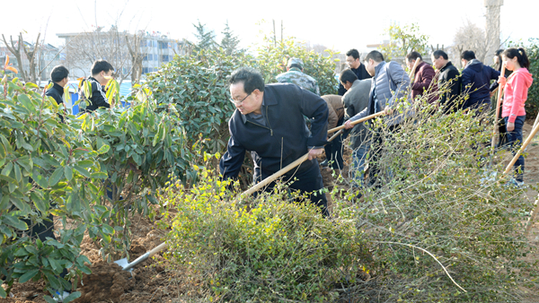 陽春三月,草長鶯飛,正是植樹好時(shí)節(jié)。3月1日下午,機(jī)關(guān)一、機(jī)關(guān)二黨總支組織黨員開展了“為校園添綠”主題黨日活動(dòng)。副校長魏書堂與機(jī)關(guān)80余名黨員在新建綜合樓前栽樹種花,綠化校園。后勤保障處全體職工、機(jī)關(guān)部分民主黨派成員及職工參加活動(dòng)。