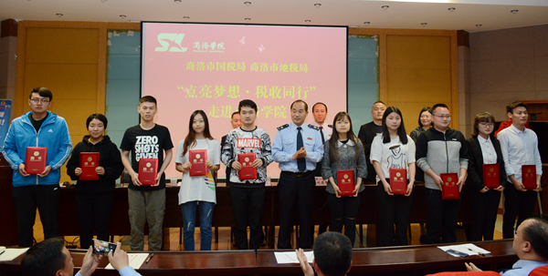 在第27個(gè)全國(guó)稅收宣傳月到來之際,為了宣傳普及稅法知識(shí),增強(qiáng)師生稅法意識(shí),4月19日,商洛市國(guó)稅局、商洛市地稅局聯(lián)合開展的“點(diǎn)亮夢(mèng)想?稅收同行”稅法宣傳活動(dòng)走進(jìn)我校。紀(jì)委書記王思懷,市國(guó)稅局副局長(zhǎng)劉存智,市地稅局副局長(zhǎng)馮書云出席活動(dòng)。我校宣傳部、財(cái)務(wù)處、經(jīng)管學(xué)院負(fù)責(zé)人及相關(guān)人員,國(guó)稅、地稅干部,經(jīng)管學(xué)院師生代表150余人參加活動(dòng)。