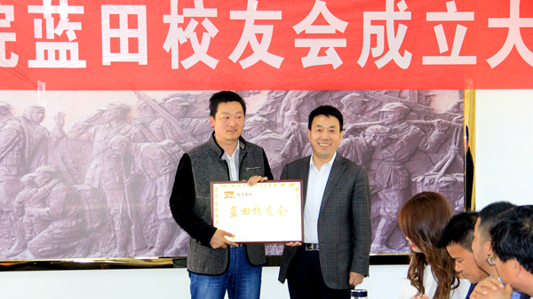 彭虎軍代表校友總會為藍(lán)田校友會授牌授旗并頒發(fā)聘書,校友總會辦公室主任郭英勇宣讀了藍(lán)田校友會批復(fù)和聘任文件,藍(lán)田校友會秘書長邵舉樂宣讀了《藍(lán)田校友會章程(試行)》,大會由副會長賀娜娜主持。