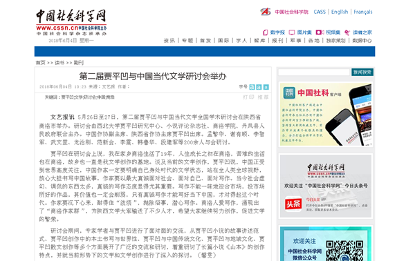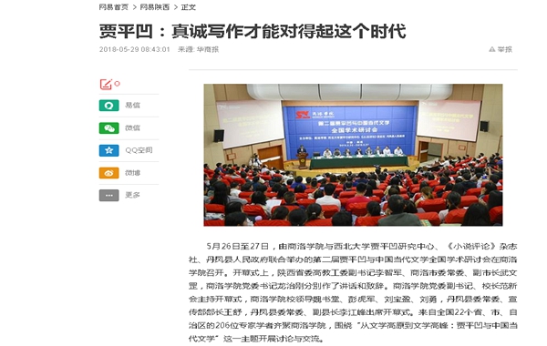 5月26日至27日,由我校與西北大學(xué)賈平凹研究中心、《小說評(píng)論》雜志社、丹鳳縣人民政府聯(lián)合舉辦的第二屆賈平凹與中國當(dāng)代文學(xué)全國學(xué)術(shù)研討會(huì)在我校召開。來自全國22個(gè)?。ㄖ陛犑?、自治區(qū))的200余位專家學(xué)者齊聚我校,同時(shí)還吸引了全國媒體記者的目光。人民網(wǎng)、光明網(wǎng)、中國社會(huì)科學(xué)網(wǎng)、中國作家網(wǎng)、搜狐網(wǎng)、陜西日?qǐng)?bào)、陜西省教育廳網(wǎng)站、陜西網(wǎng)、文化藝術(shù)報(bào)、三秦網(wǎng)、三秦都市報(bào)、華商網(wǎng)、西北信息報(bào)、商洛日?qǐng)?bào)、商洛市人民政府、商洛廣播電視臺(tái)、商洛新聞網(wǎng)等中央、省、市媒體和參會(huì)代表所在單位進(jìn)行了報(bào)道,一些微信、微博等自媒體也紛紛報(bào)道和轉(zhuǎn)發(fā)。通過報(bào)道,賈平凹的文學(xué)世界進(jìn)一步為更多讀者所了解,賈平凹的文學(xué)藝術(shù)進(jìn)一步在更廣闊的空間傳播,積極促進(jìn)了商洛乃至陜西文學(xué)事業(yè)的繁榮發(fā)展,擴(kuò)大了我校的知名度和影響力。