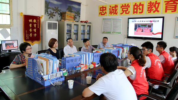 王思懷代表學校對商洛市高新區(qū)、張塬小學等根植地方合作單位支持我校根植地方行動計劃、為項目實施提供平臺表示感謝。王思懷一行現(xiàn)場察看了我校在張塬小學開展的實踐教育活動和根植地方項目開展情況,分別聽取了張塬小學負責人、根植地方行動項目負責人及人文學院暑期社會實踐團隊成員所作的工作匯報,并進行座談交流。
