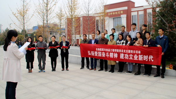 生物醫(yī)藥與食品工程學(xué)院教工黨員及部分黨外人員代表前往富平縣愛(ài)國(guó)主義教育示范基地開(kāi)展主題黨日活動(dòng)。在習(xí)仲勛陵園和習(xí)仲勛同志生平事跡展館,參加活動(dòng)的全體同志一起緬懷革命先輩,追憶老一輩無(wú)產(chǎn)階級(jí)革命家光輝的革命歷程,了解習(xí)仲勛同志為新中國(guó)的建立、建設(shè)和改革開(kāi)放事業(yè)嘔心瀝血的歷史事跡和他在工作中始終堅(jiān)持實(shí)事求是、心系群眾的優(yōu)良作風(fēng)。在習(xí)仲勛紀(jì)念館前,黨員們面對(duì)黨旗,重溫入黨誓詞,黨員代表深情朗誦《可愛(ài)的祖國(guó)》,以習(xí)仲勛同志“戰(zhàn)斗一生,快樂(lè)一生;天天奮斗,天天快樂(lè)”的話語(yǔ)為勉勵(lì),真正做到立足崗位做貢獻(xiàn)。