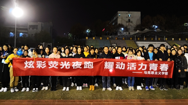 ——熒光夜跑活動。11月26日晚,馬克思主義學(xué)院在學(xué)校操場舉辦以“炫彩熒光夜跑,耀動青春活力”為主題的夜跑活動,200多名師生參加了此次活動?;顒娱_始后,師生們手帶熒光環(huán)、揮舞熒光棒,在慢跑中欣賞夜色中的校園,用自己的青春和活力為校園增添靚麗風(fēng)景。夜跑結(jié)束后,大家還一起進(jìn)行了有趣的互動游戲,在歡樂的氛圍中享受運(yùn)動的樂趣,增進(jìn)彼此的友誼。
