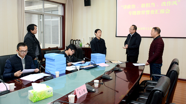督導(dǎo)組認真查閱了我?!爸v政治、敢擔(dān)當(dāng)、改作風(fēng)”專題教育檔案材料,仔細了解方案制定、開展專題學(xué)習(xí)研討等情況,并對專題教育的組織推進及存在問題進行了現(xiàn)場指導(dǎo)。