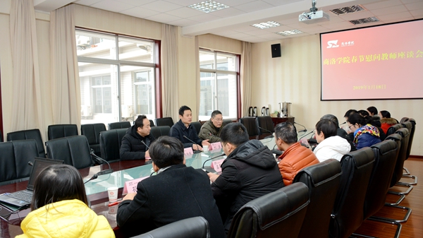 1月18日上午,我校召開2019年春節(jié)慰問(wèn)教師代表座談會(huì),副校長(zhǎng)劉勇代表學(xué)校向與會(huì)教師送去了節(jié)日的問(wèn)候和誠(chéng)摯的祝福。黨委委員、院長(zhǎng)辦公室主任張向東參加座談會(huì),黨委委員、教務(wù)處處長(zhǎng)李超主持座談會(huì)。