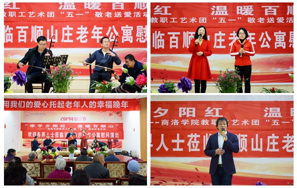 4月27日,商洛學(xué)院教職工藝術(shù)團(tuán)走進(jìn)商州百順山莊,開展“敬老送愛”慰問演出活動(dòng),為那里的老人們送去一場豐富多彩的文藝愛心大餐。