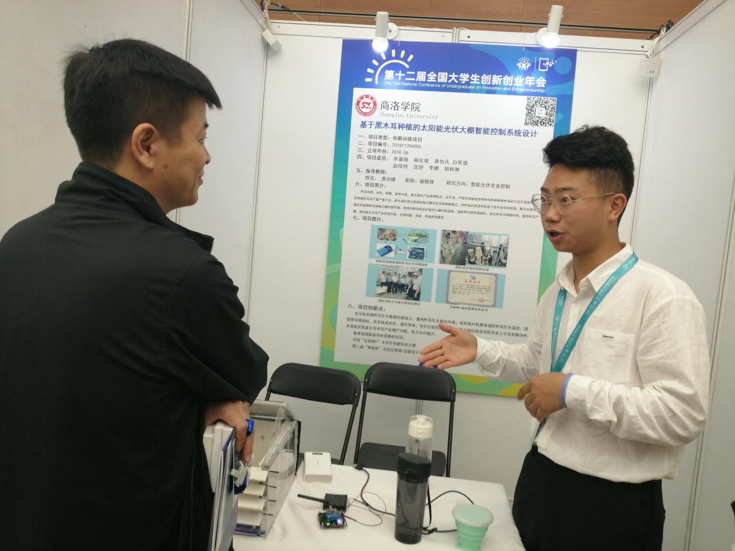 按照教育部、省教育廳有關(guān)要求,學(xué)校從6月開始籌備參賽事宜,經(jīng)過校內(nèi)遴選、指導(dǎo)打磨,教育廳層層選拔、教育部終審評定,由我校電子信息與電氣工程學(xué)院教師袁訓(xùn)鋒、楊燕指導(dǎo),學(xué)生楊化俊、李娜、胡桂馳等完成的創(chuàng)新創(chuàng)業(yè)項(xiàng)目作品“基于黑木耳種植的太陽能光伏大棚智能控制系統(tǒng)設(shè)計(jì)”,最終成功入圍年會展示交流項(xiàng)目,并在現(xiàn)場展示中獲得與會專家和師生的廣泛好評。