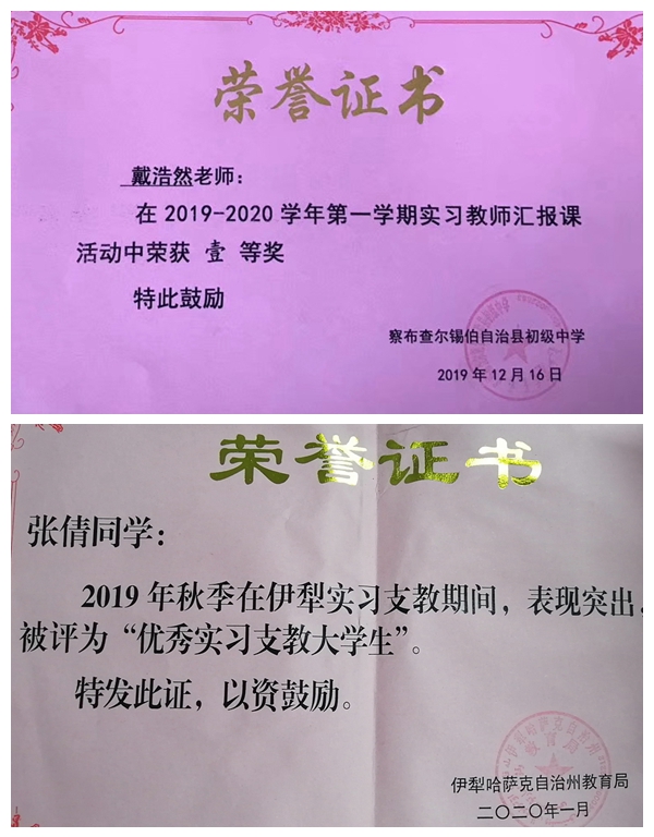 實(shí)習(xí)期間,我校支教學(xué)生始終心懷援疆支教的信念,立足支教工作崗位,以勇于擔(dān)當(dāng)?shù)姆瞰I(xiàn)精神,扎實(shí)的專(zhuān)業(yè)基礎(chǔ)知識(shí),飽滿的工作熱情和勤奮務(wù)實(shí)的工作作風(fēng),認(rèn)真開(kāi)展聽(tīng)課、備課、研課、上課以及學(xué)生輔導(dǎo)答疑等各項(xiàng)教學(xué)工作,組織開(kāi)展形式多樣的班級(jí)活動(dòng),積極參與實(shí)習(xí)學(xué)校的各項(xiàng)教學(xué)活動(dòng),展現(xiàn)了良好的精神風(fēng)貌,受到了州、市、縣各級(jí)教育局和支教學(xué)校的充分肯定,多名學(xué)生在學(xué)校賽教中獲獎(jiǎng),20多名學(xué)生被伊犁州或縣(市)教育局授予 “優(yōu)秀實(shí)習(xí)支教大學(xué)生”榮譽(yù)稱(chēng)號(hào)。當(dāng)?shù)亟逃块T(mén)和各實(shí)習(xí)學(xué)校希望我校繼續(xù)選派優(yōu)秀學(xué)生赴疆支教實(shí)習(xí),為新疆基礎(chǔ)教育事業(yè)發(fā)展提供更多的師資人才力量。