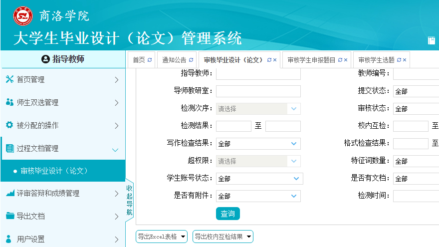 ——線上查重、方便快捷。教務(wù)處與中國(guó)知網(wǎng)多次溝通協(xié)商,為我校量身定制了“商洛學(xué)院畢業(yè)論文(設(shè)計(jì))管理系統(tǒng)”,將全體2020屆畢業(yè)生及論文(設(shè)計(jì))指導(dǎo)教師基本信息導(dǎo)入系統(tǒng),免費(fèi)向師生開放,便于師生論文查重、在線遠(yuǎn)程指導(dǎo)與實(shí)時(shí)管理,助推我校信息化管理水平不斷提升。為了確保了師生論文查重及在線指導(dǎo)工作順利開展,教務(wù)處還提前進(jìn)行了多次系統(tǒng)調(diào)試、測(cè)試,并編制《畢設(shè)管理系統(tǒng)學(xué)生查重操作手冊(cè)》《畢設(shè)管理系統(tǒng)教師審核操作手冊(cè)》,對(duì)師生論文查重過程中的疑難問題給予悉心指導(dǎo)和幫助。一名學(xué)生在使用“商洛學(xué)院畢業(yè)論文(設(shè)計(jì))管理系統(tǒng)”后感慨道:“畢設(shè)管理系統(tǒng)功能強(qiáng)大,方便實(shí)用,既省時(shí)省力省事,又節(jié)省經(jīng)濟(jì)開支,還實(shí)現(xiàn)了全覆蓋,對(duì)于高效高質(zhì)完成畢業(yè)生畢業(yè)論文(設(shè)計(jì))發(fā)揮了重要作用”。