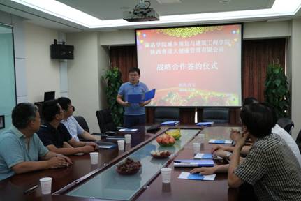 郝智山總經(jīng)理代表陜西善道大健康管理有限公司做了表態(tài)發(fā)言,首先介紹了公司的基本情況、經(jīng)營理念和近幾年取得的成績。他希望我校充分發(fā)揮技術、知識、人才優(yōu)勢,在合作研究方面取得新成果;為學生提供實習、就業(yè)崗位;同時為城鄉(xiāng)規(guī)劃與建筑工程學院在教學、科研、培訓等方面提供一切便利條件。