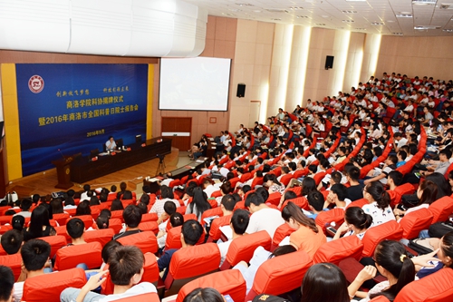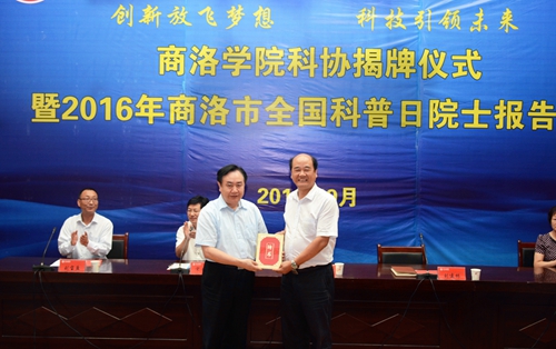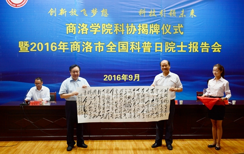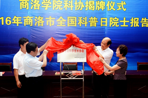 儀式上,劉建林、樊代明、宋奇志、閆彩芹共同為“商洛學(xué)院科學(xué)技術(shù)協(xié)會”揭牌。