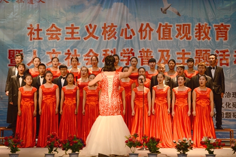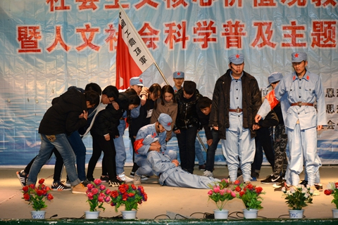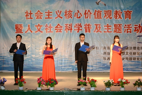 12月11日晚,由我校思想政治理論課教學(xué)研究部、商洛學(xué)院思想文化研究所、社會化問題研究應(yīng)用科普基地等部門聯(lián)合舉辦的“社會主義核心價值觀教育暨人文社會科學(xué)普及主題活動”匯報演出,在學(xué)校大學(xué)生活動中心舉行。黨委宣傳部、團(tuán)委、思政部相關(guān)負(fù)責(zé)人,思政部全體教師及2016級600余名學(xué)生觀看了演出。