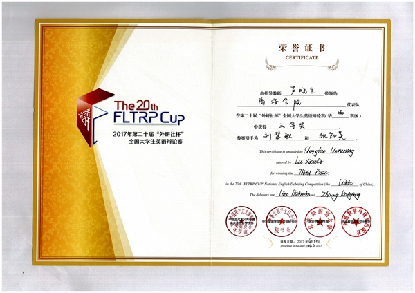 4月28日至30日,第二十屆“外研社杯”全國大學生英語辯論賽華西賽區(qū)決賽在四川外國語大學舉行。我校語言文化傳播學院2014級英語專業(yè)學生劉慧敏、2013級英語專業(yè)學生張凱英榮獲三等獎。通過參賽,選手們既開闊了視野,增長了知識,提高了英語口語能力,又鍛煉了思維能力和表達能力。