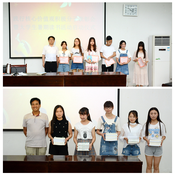 近年來,思政部高度重視在學(xué)生中開展社會(huì)主義核心價(jià)值觀教育,除積極在課堂教學(xué)中進(jìn)行理論講授和知識(shí)解讀外,還通過開辦《思想報(bào)》、微信群以及“五微”教學(xué)競賽等形式探索核心價(jià)值觀教育實(shí)踐教學(xué)新模式,并取得了豐富的實(shí)踐經(jīng)驗(yàn)、良好的教學(xué)效果和較高的社會(huì)評(píng)價(jià)。對(duì)核心價(jià)值觀積極踐行者進(jìn)行表彰并啟動(dòng)暑期讀書活動(dòng)不僅是對(duì)思政部核心價(jià)值觀教育成果的初步總結(jié),也是進(jìn)一步深化思想政治教育教學(xué)改革尤其是探索完善核心價(jià)值觀暑期實(shí)踐教學(xué)環(huán)節(jié)的創(chuàng)新舉措。