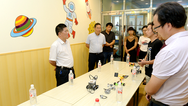 7月31日,校長(zhǎng)范新會(huì)在教務(wù)處處長(zhǎng)李超的陪同下,深入商州區(qū)秦漢墨香童書館、新樂(lè)章藝術(shù)培訓(xùn)中心等單位,分別檢查了電信學(xué)院、藝術(shù)學(xué)院根植地方行動(dòng)計(jì)劃項(xiàng)目開展情況。