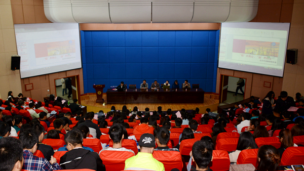 簽約儀式前,鮑艷一行對我校有考研意向的學(xué)生做了招生宣講。