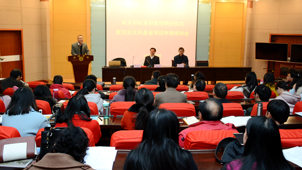 為提高我校教師國家社科基金項(xiàng)目和教育部人文社科項(xiàng)目的申報(bào)質(zhì)量和水平,12月5日,應(yīng)我??萍继幯?,中央黨校科研部陳玉侖教授來到我校,為教師作了題為《如何規(guī)范申報(bào)國家社科基金項(xiàng)目與教育部人文社科項(xiàng)目》的專題報(bào)告并受聘為我校兼職教授。副校長劉寶盈主持了報(bào)告會(huì)和聘任儀式,副校長劉勇為陳玉侖教授頒發(fā)聘書。馬克思主義學(xué)院、人文學(xué)院、經(jīng)管學(xué)院、藝術(shù)學(xué)院、體育教學(xué)部、健康學(xué)院、建工學(xué)院相關(guān)專業(yè)教師100余人聽取了報(bào)告。
