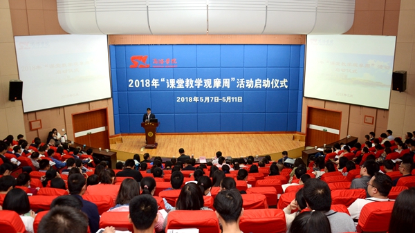 范新會(huì)在儀式上作動(dòng)員講話。他指出,我們組織開(kāi)展課堂教學(xué)觀摩周活動(dòng),是對(duì)全國(guó)高等教育教學(xué)改革發(fā)展形勢(shì)的積極響應(yīng),是發(fā)揮課堂教學(xué)主渠道作用提高人才培養(yǎng)質(zhì)量的落地執(zhí)行,也是貫徹全國(guó)高校思想政治工作會(huì)議精神的具體行動(dòng)。他談到,課堂教學(xué)是“一流學(xué)院、一流專(zhuān)業(yè)”建設(shè)的“主戰(zhàn)場(chǎng)”。推進(jìn)課堂教學(xué)改革,培養(yǎng)應(yīng)用型人才,是提高教學(xué)質(zhì)量、推進(jìn)“一流學(xué)院”建設(shè)的關(guān)鍵;課堂教學(xué)是鞏固立德樹(shù)人的“主陣地”。要堅(jiān)持把立德樹(shù)人作為中心環(huán)節(jié),把思想政治工作貫穿教育教學(xué)全過(guò)程,讓課程思政的理念深入課堂,促進(jìn)學(xué)生全面發(fā)展,健康成長(zhǎng)。要在服務(wù)地方經(jīng)濟(jì)社會(huì)發(fā)展的同時(shí),放眼全國(guó),培養(yǎng)適應(yīng)時(shí)代發(fā)展需求的各類(lèi)應(yīng)用型人才。要積極探索課堂教學(xué)與信息化結(jié)合的途徑,引入外部?jī)?yōu)質(zhì)資源,推進(jìn)課堂教學(xué)改革,整體構(gòu)建符合教育規(guī)律、體現(xiàn)時(shí)代特征的課程體系;課堂教學(xué)是教師學(xué)術(shù)水平的試金石。教師要想真正的掌控課堂,除了要有真本事,還要有真招數(shù),要研究教學(xué)內(nèi)容,研究教學(xué)方法,要設(shè)計(jì)課堂、組織課堂、管理課堂,要解決好學(xué)生“為什么學(xué)、學(xué)什么、怎么學(xué)”的問(wèn)題,還要研究“為什么教、教什么、怎么教”的問(wèn)題。