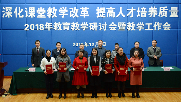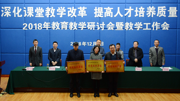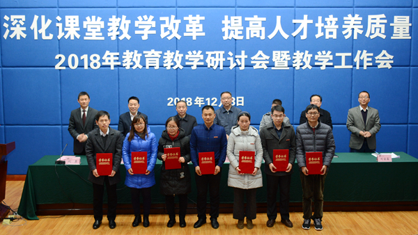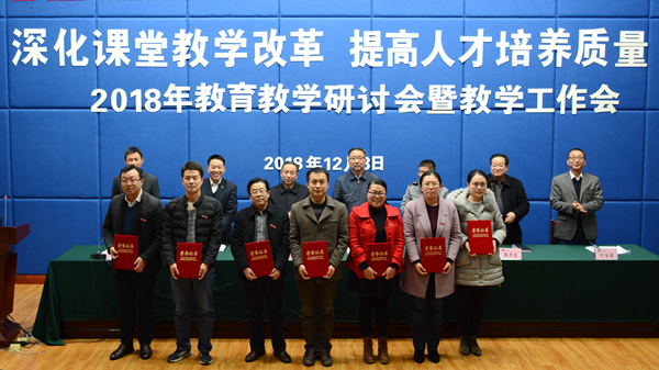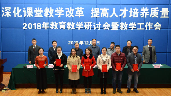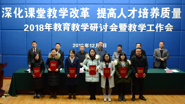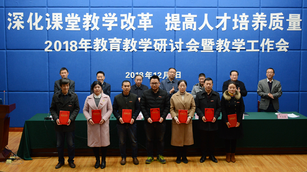 大會對我校2018年度優(yōu)秀教案及優(yōu)秀電子課件、實(shí)習(xí)優(yōu)秀指導(dǎo)教師、2018屆校級優(yōu)秀畢業(yè)論文指導(dǎo)教師、第四屆“互聯(lián)網(wǎng)+”大學(xué)生創(chuàng)新創(chuàng)業(yè)大賽校賽獲獎教師、2018年度青年教師教學(xué)技能競賽獲獎教師、首屆課堂教學(xué)創(chuàng)新大賽獲獎教師、2018年教育教學(xué)研討會優(yōu)秀論文及優(yōu)秀組織單位進(jìn)行了表彰,劉寶盈宣讀了表彰決定。