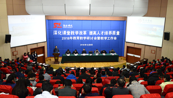 12月8日,我校召開2018年教育教學(xué)研討會暨教學(xué)工作會。黨委書記龍治剛、校長范新會、紀(jì)委書記王思懷、副校長魏書堂、黨委副書記彭虎軍,副校長劉寶盈、劉勇出席大會。大會以“深化課堂教學(xué)改革,提高人才培養(yǎng)質(zhì)量”為主題,邀請西安交通大學(xué)陸根書教授作了精彩報告,相關(guān)職能部門負(fù)責(zé)人及優(yōu)秀教師代表在大會上作了專題報告和交流。大會還對2018年度教育教學(xué)工作中涌現(xiàn)出的先進(jìn)集體和個人進(jìn)行了表彰。全??萍壱陨细刹亢蛯H谓處煿?00余人參加大會。大會由劉勇主持。