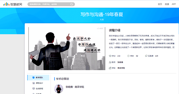 近日,我校張曉倩副教授主持的《寫作與溝通》課程在“智慧樹(shù)網(wǎng)”成功上線運(yùn)行。這是我校教師主持建設(shè)的在線開(kāi)放課程第一次在國(guó)內(nèi)知名公開(kāi)課程聯(lián)盟平臺(tái)上線。