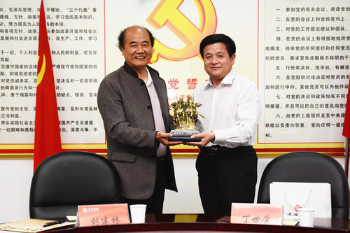 5月25日,湖北文理學(xué)院校長丁世學(xué)率辦公室、發(fā)展規(guī)劃與政策法規(guī)處、科技處、后勤集團(tuán)負(fù)責(zé)人來我??疾旖涣鳌P|h委書記、校長劉建林親切會(huì)見了丁世學(xué)一行,并與丁世學(xué)分別代表雙方互贈(zèng)象征兩校友誼的紀(jì)念品。黨委副書記、副校長范新會(huì)主持座談交流。副校長劉寶盈陪同考察交流。