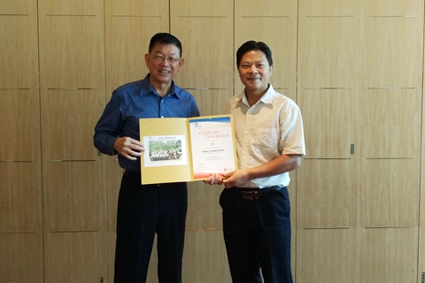 南洋理工大學(xué)副校長(zhǎng)李盛光教授向劉勇頒發(fā)結(jié)業(yè)證書(shū)