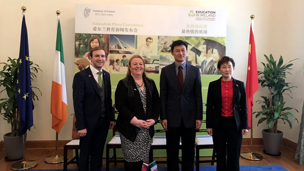 3月15日,愛爾蘭高等教育新聞發(fā)布會在愛爾蘭大使館舉行,愛爾蘭高校與多所中國高校簽署高等教育合作備忘錄。愛爾蘭副總理兼外交部與貿(mào)易部部長西蒙·科文尼、愛爾蘭駐華大使李修文、中國教育國際交流協(xié)會副秘書長沈雪松、副校長劉勇以及合作高校領導出席發(fā)布會。劉勇代表學校與愛爾蘭高威梅奧理工學院副校長凱特·努恩簽署了合作備忘錄,這是我校首次與愛爾蘭高校簽訂合作協(xié)議。