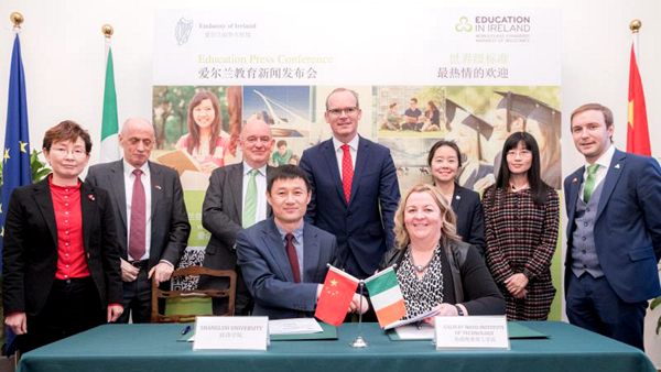 愛爾蘭副總理西蒙?科文尼(后排中間)見證合作協(xié)議簽署