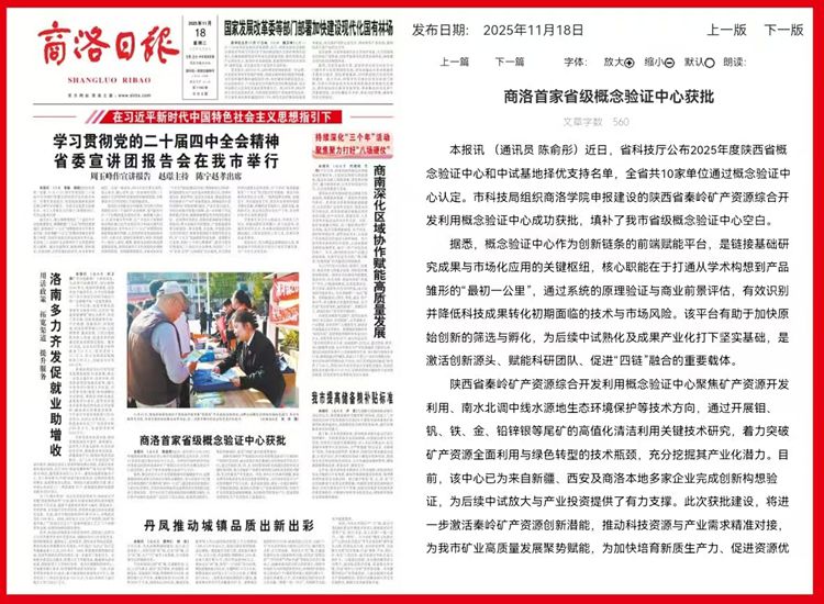 本報訊 (通訊員 陳俞彤)近日,省科技廳公布2025年度陜西省概念驗證中心和中試基地擇優(yōu)支持名單,全省共10家單位通過概念驗證中心認定。市科技局組織商洛學院申報建設的陜西省秦嶺礦產(chǎn)資源綜合開發(fā)利用概念驗證中心成功獲批,填補了我市省級概念驗證中心空白。