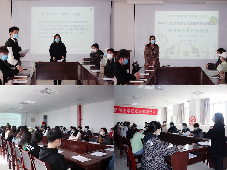 啟動(dòng)儀后,國(guó)家三級(jí)心理咨詢(xún)師,輔導(dǎo)員任倩面向全院心理委員開(kāi)展了“心理育人激揚(yáng)青春 陽(yáng)光護(hù)航助力成長(zhǎng)”主題培訓(xùn)。培訓(xùn)現(xiàn)場(chǎng),任倩通過(guò)專(zhuān)題講解、心理游戲、現(xiàn)場(chǎng)互動(dòng)等形式和學(xué)生進(jìn)行交流溝通,了解同學(xué)們心理狀況。同學(xué)們紛紛表示以后將會(huì)多關(guān)注心理健康方面知識(shí),保持積極健康心態(tài)。
