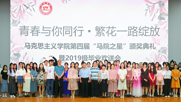 仲夏蟬鳴,游子意;菡萏怒放,畢業(yè)季。6月16日下午,馬克思主義學(xué)院以“青春與你同行·繁花一路綻放”為主題,在8號(hào)教學(xué)樓5G影院舉辦了第四屆“馬院之星”頒獎(jiǎng)典禮暨2019級(jí)畢業(yè)生歡送會(huì)。學(xué)院全體師生參加了本次活動(dòng)。